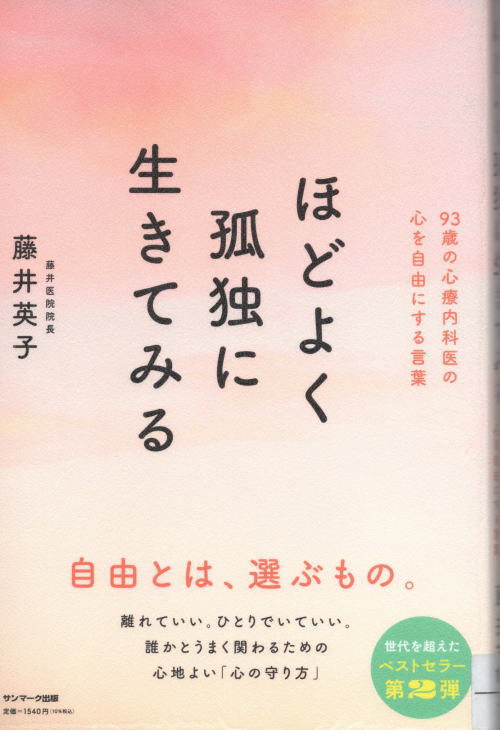 | 現在、94歳で漢方心療内科の院長を務める 藤井英子著「ほどよく孤独に生きてみる」を 読みました。数々の患者さんと接した中で 著した本書は教訓に満ち溢れていました。 2026.03.15(日) |