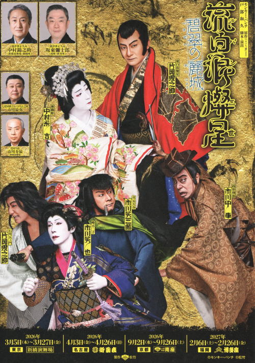 | モンキー・パンチの人気漫画「ルパン三世」を原作にした 新作歌舞伎「流白浪燦星 碧翠の麗城」を新橋演舞場で 観てきました。芝居見物は今も昔も華やかで心が躍ります。 2026.03.17(火) |