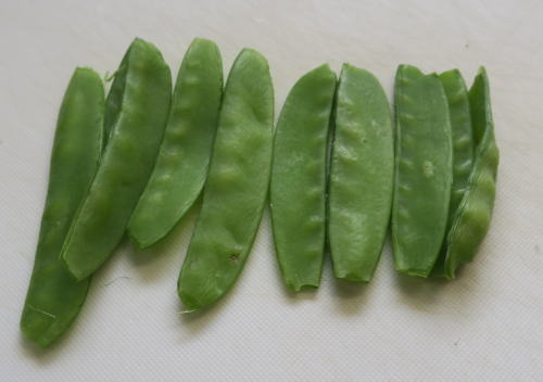 絹さや:10枚は、筋を取り茹でておきます。 |