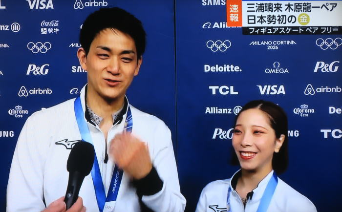 | ペアフリーでは完璧な演技で逆転劇。この種目では 日本勢初の金メダルを獲得しました。 |