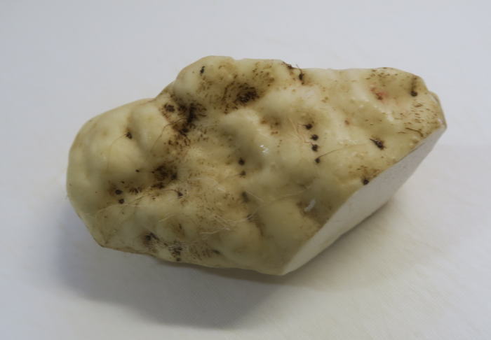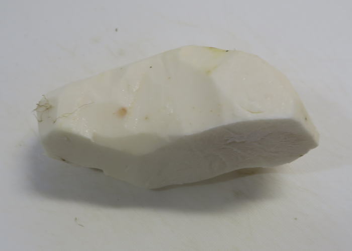 包丁で丁寧に皮をむきます。 (約170gになりました。) |