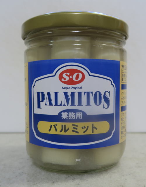 | 「パルミット」とはヤシの若木の芯で アスパラに似たほんのりとした甘味と、 やわらかいタケノコのような食感です。 |