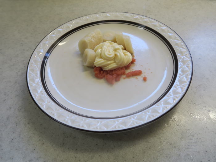 いつものように、たら子とマヨネーズを 和えたところにパルミットを加えました。 |