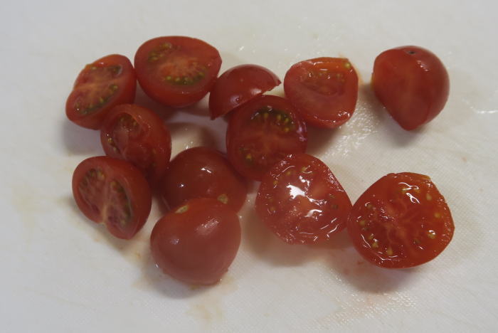 ミニトマトは半分にカット。 |