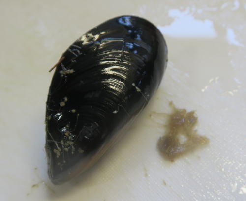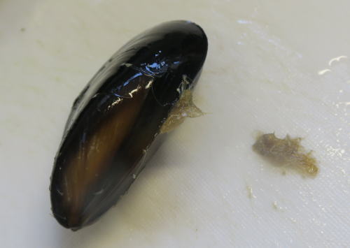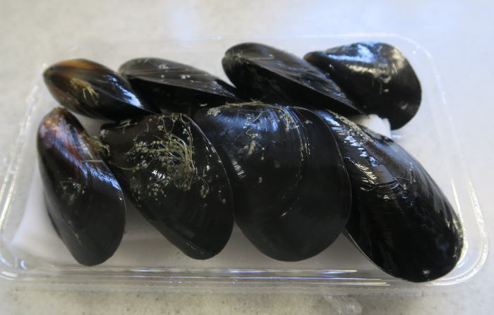 ムール貝はたわしでこすり しっかり汚れを落とします。 |